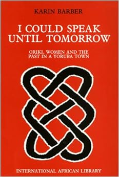 I COULD SPEAK UNTIL TOMORROW: ORIKI, WOMEN AND THE PAST IN ... I COULD SPEAK UNTIL TOMORROW: ORIKI, WOMEN AND THE PAST IN A YORUBA TOWN (International African Library) [Karin Barber] on Amazon.com. *FREE* shipping on qualifying offers. In this work of literary anthropology, the oriki poetry of Okuku, a small town in the Oyo state of Nigeria I Could Speak Until Tomorrow : Oriki, Women, and the Past ... In Yoruba culture oriki, or oral praise poetry, is a major part of both traditional performance and daily life, and as such reflects social change and structure both past and present. Karin Barber studies the orikipoetry of Okuku, a small town in the Oyo state of Nigeria. She shows how women, the main performers of the oriki, interpret the poems and examines the links it gives them between ... In Praise of Oriki - I Could Speak until Tomorrow: Oriki ... In Praise of Oriki - I Could Speak until Tomorrow: Oriki, Women and the Past in a Yoruba Town. By Barber Karin. Edinburgh: Edinburgh University Press for the International African Institute, 1991. Pp. ix+354. 45. - Volume 33 Issue 2 - Toyin Falola